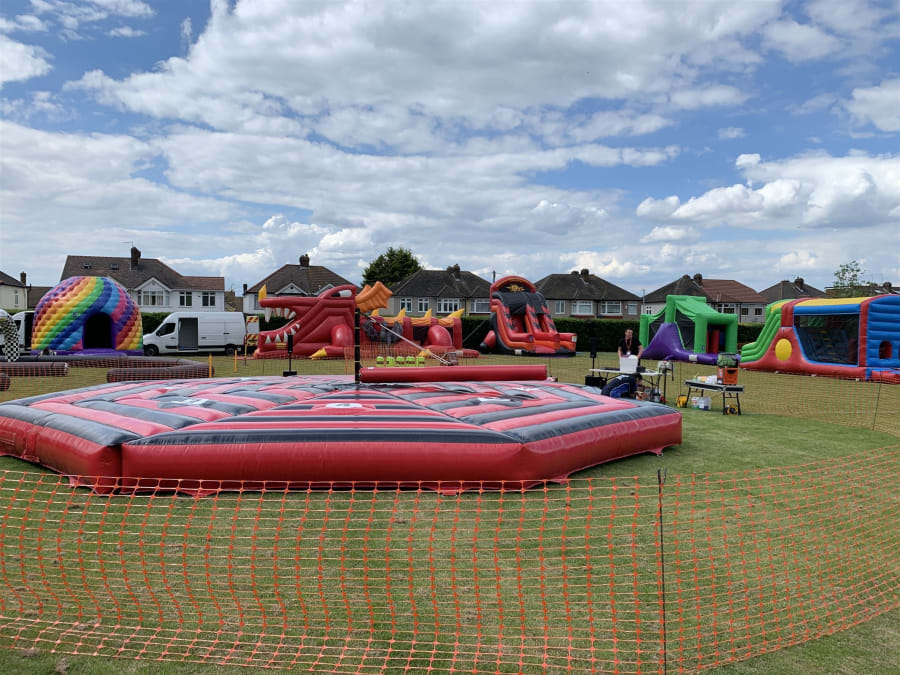 The inflatable bed measures a whooping 28ft by 28ft to ensure the game can be enjoyed with safety in Mind. We spent a year looking for this exciting game whilst gaining enough knowledge to choose the best suited sweeper designed with safety in mind whilst enjoying this popular game. We decided to choose a flat bed inflatable so spectators can easily watch the game combined with a one armed mechanical arm. We found the duck and dive sweeper which includes 2 mechanical arm's to be a little unsafe due to hitting people in the head.