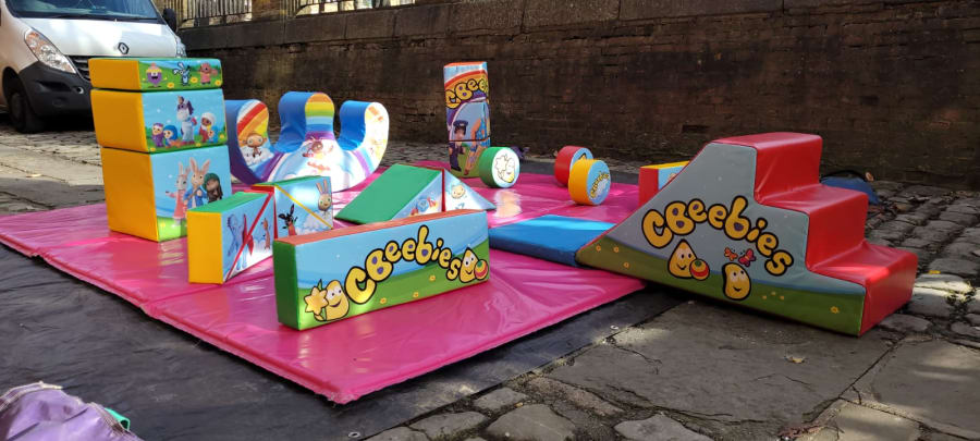 The CBeebies soft play set includes an array of brightly coloured shapes, slides, and mats, all designed with favourite CBeebies characters to capture kids’ imaginations. The accompanying ball pit, filled with vibrant balls, adds even more excitement to the setup. It’s ideal for keeping little ones entertained at birthdays, family gatherings, or even school and nursery events.