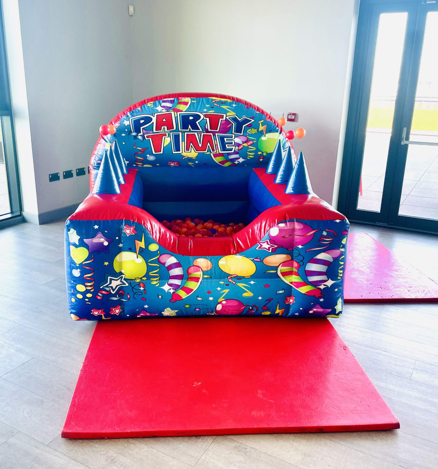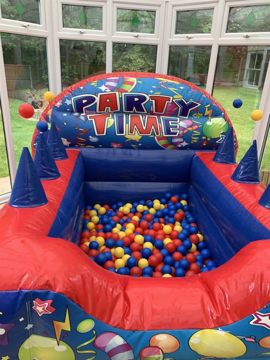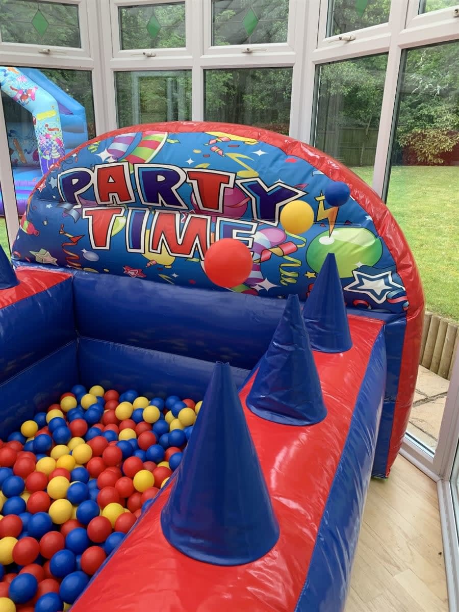 Great party themed ball pond with integrated jugglers to help keep the balls floating in midair.