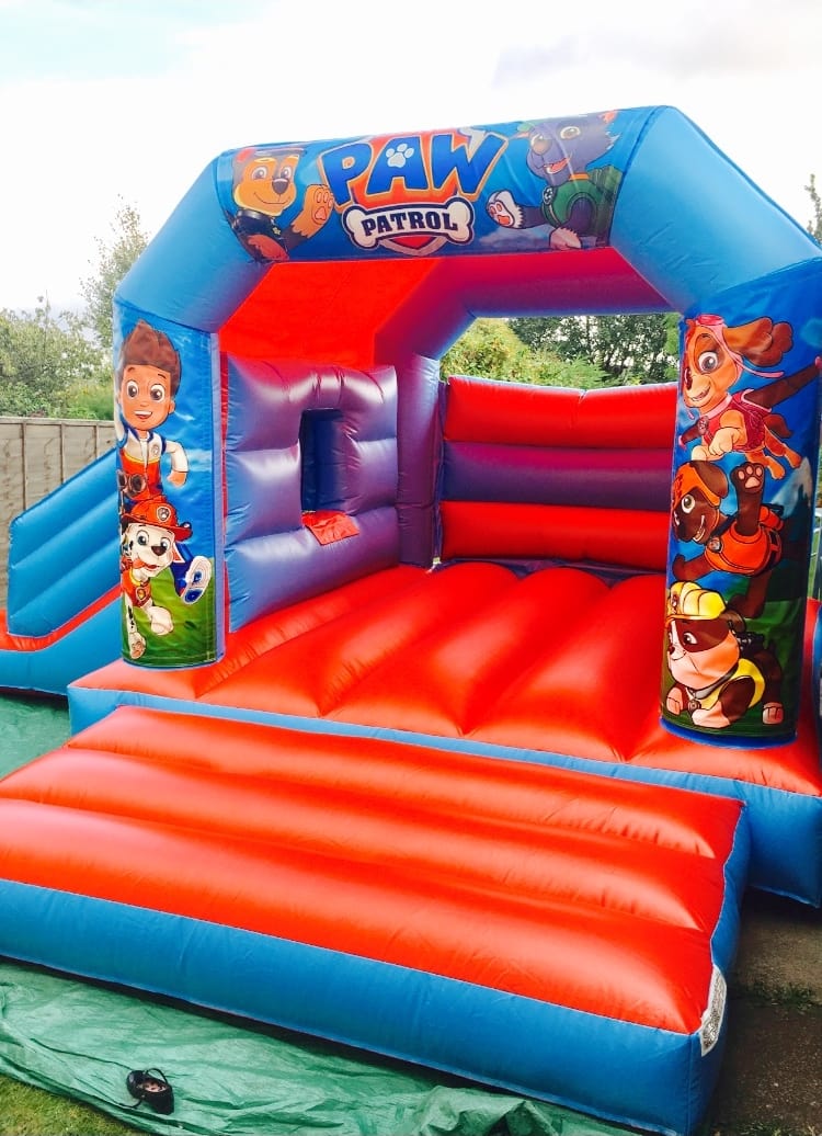 The Paw Patrol theme is also available as a standard castle or bouncy castle with internal slide.