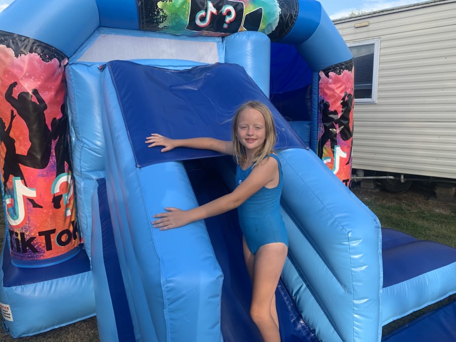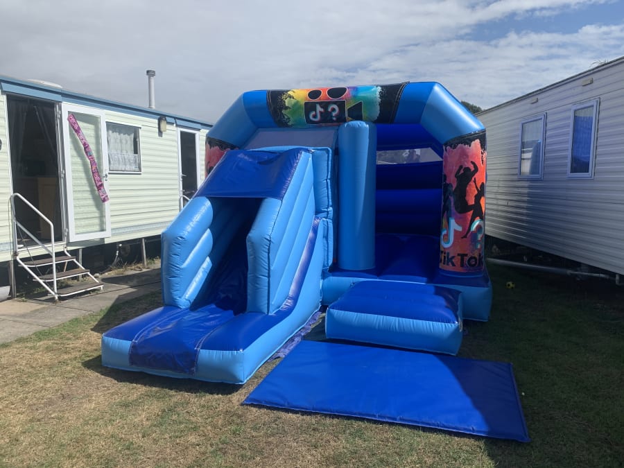 Here at Simply Bouncy Castle Hire we always offer the latest bouncy castle hire. We now offer the latest craze of TIK TOK bouncy castles including this bouncy castle with front slide.