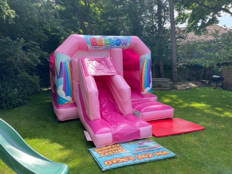 Kids can’t help but smile when they see a rainbow fill the sky, so just imagine their little faces when they see this rainbow bounce and slide castle filling their garden or party venue! It’s a multi-coloured world of adventure just waiting for the guest of honour and their friends to enjoy as party of a magical, memorable party.