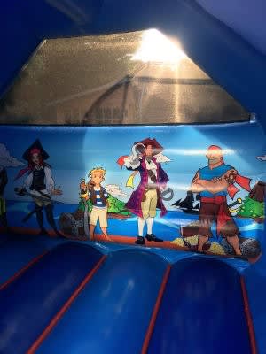 Shiver me timbers its our New Pirate Slide Bouncy Castle. This Pirate theme is a great idea for any party as not only can you bounce around inside the castle, but also slide down the deck on the internal slide.