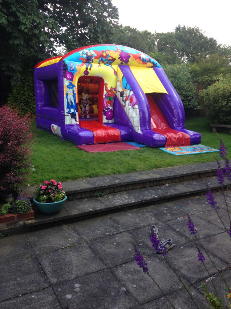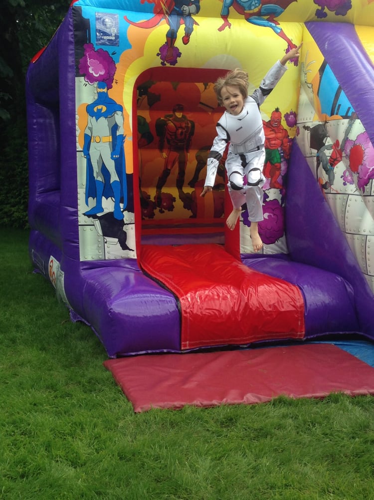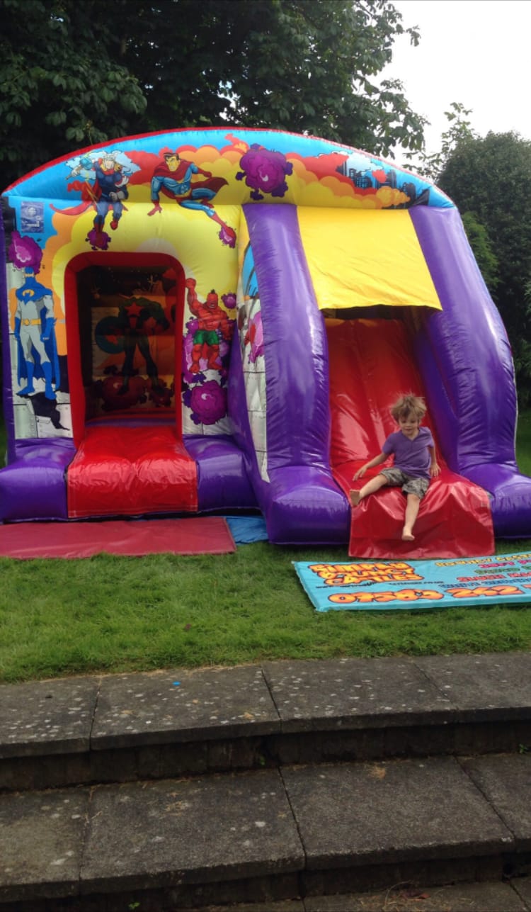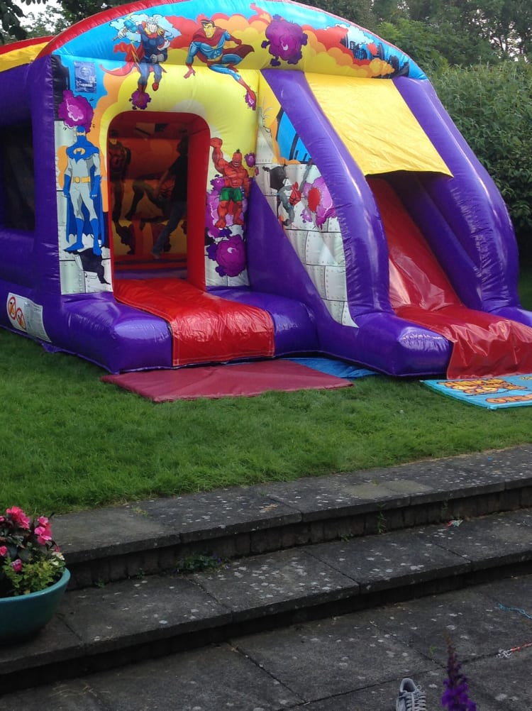 Superhero Front Slide Bouncy Castle for hire in Gravesend, Chatham, Rochester, Gillingham and across Kent
