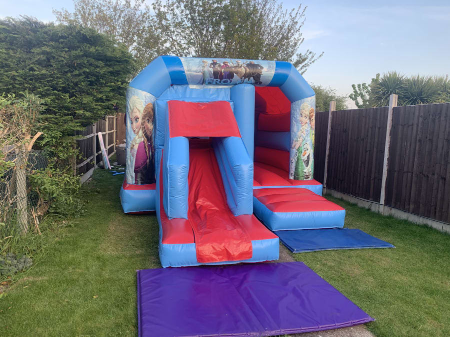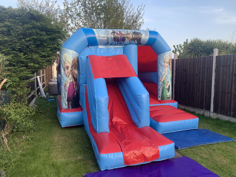 Planning on holding a Frozen themed birthday party then look no further with this amazing Frozen bouncy castle including a front slide. The bounce area is the same jumping space as a standard bouncy castle with an attached forward facing slide so double the fun.
