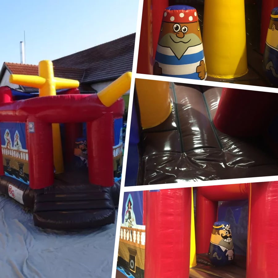 Inside this vessel there is a great bouncy bed so the children can jump and down followed by captain and his crew bish bash so the kids can play fight by jumping on them. There is also a great slide which includes a separate ladder to help the littles ones climb up and then slide down the slide safely.