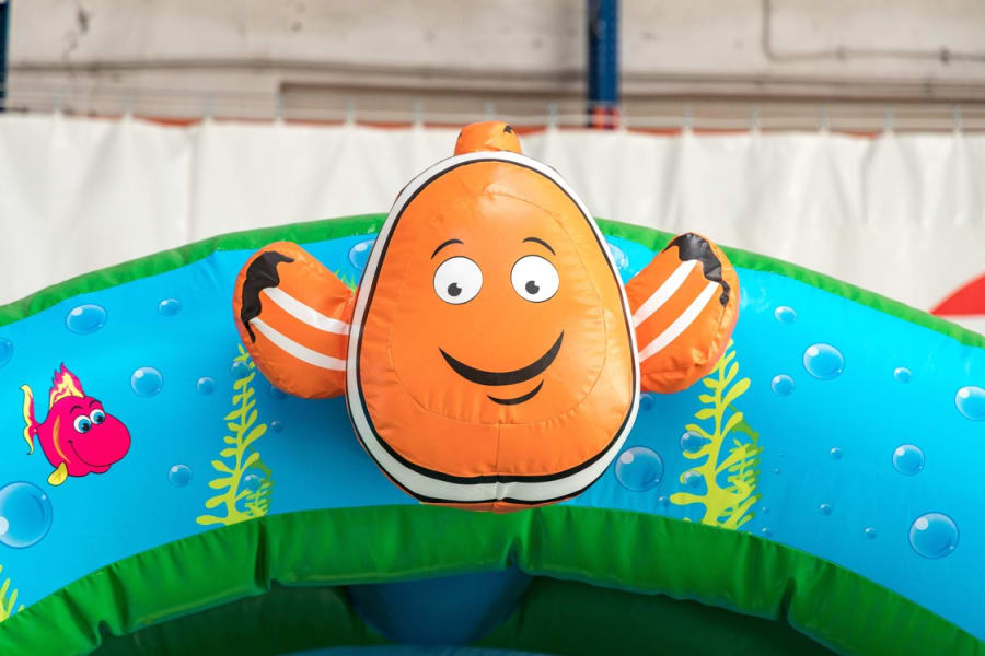 Dive into an ocean adventure with our 3D Under The Sea Bouncy Castle, a spectacular inflatable featuring a Clown Fish, Turtle, and Dolphin in eye-catching three-dimensional detail. This vibrant and exciting bouncy castle is perfect for ocean-themed parties, birthdays, school events, and summer celebrations across Kent.