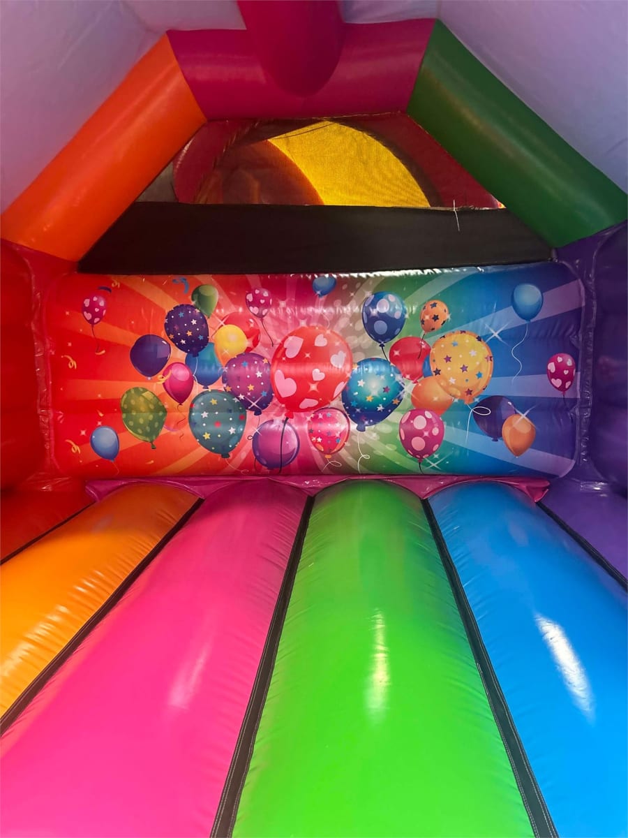 Bring the whole family together for bouncing fun with Simply Bouncy Castle Hire’s Family bouncy castle. Featuring a vibrant multicoloured design with cheerful balloons and streamers, this inflatable is perfect for guests of all ages. Whether it’s a children’s birthday party, a family barbecue, or a community event, the Family Bouncy Castle is the ultimate crowd-pleaser.