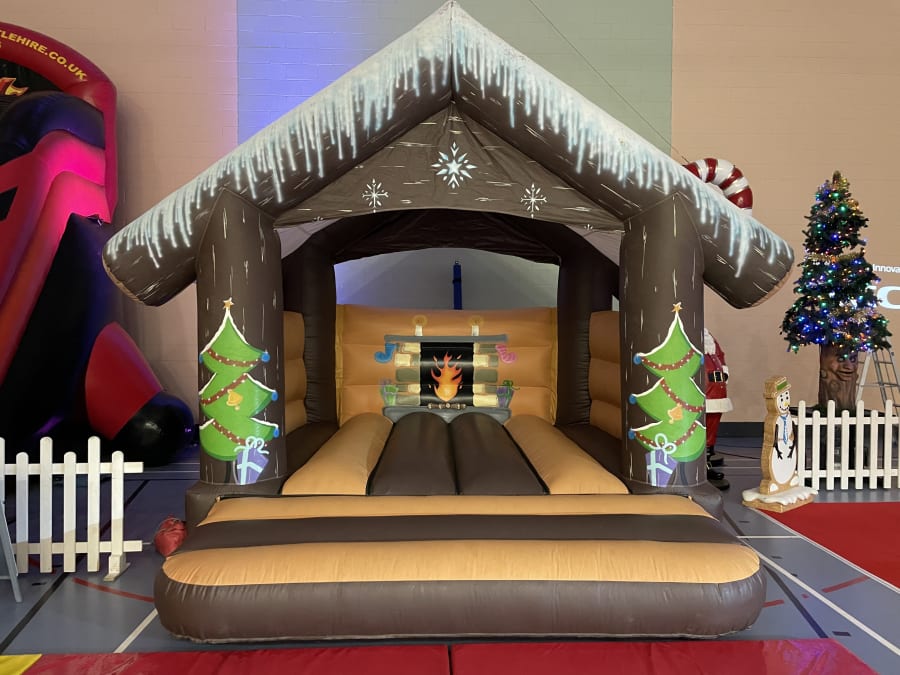 The Christmas cabin bouncy castle has so many possibilities, from taking centre stage at your school Christmas party, to entertaining the kids at a Christmas fayre or traditional festive market. It has a built-in shower cover for use outdoors, or you can set it up inside if you have the space.