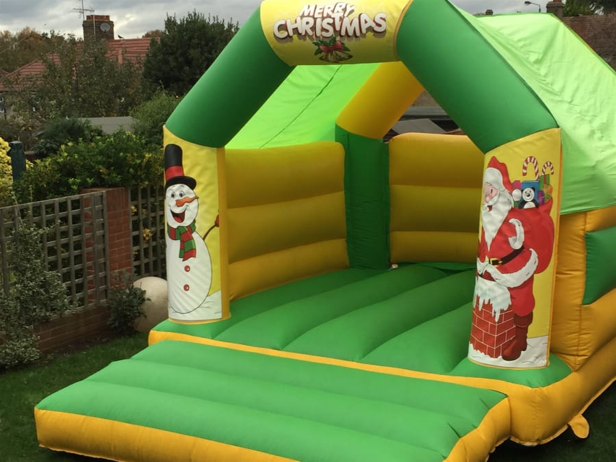 Our christmas themed bouncy castle is perfect for childrens christmas parties and christmas events. Featuring Santa and a snowman!