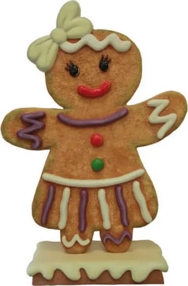 From the bow in her hair to the snow at her feet, this pretty gingerbread girl figure is a winner from head to toe. Dressed in a striped skirt and festive buttoned jumper, she would melt the heart of Scrooge himself, so she’s sure to appeal to your Christmas guests, whether they’re kids, colleagues or customers.
