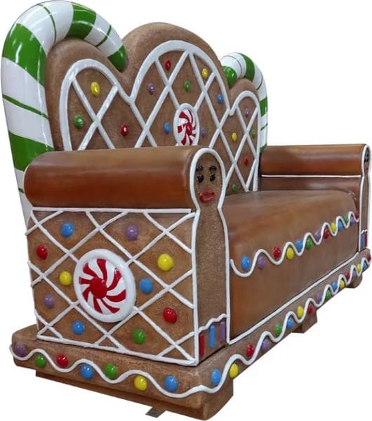 This beautiful piece of festive furniture is hand made from durable resin and hand painted in the most incredible detail. From the striped candy canes arching across the back to the Smartie-style sweets dotted all over it, it is a beautiful thing to behold. Each arm is supported by a gingerbread man and each side has a swirling red and white sweet. The finish is the icing on the cake – and it’s even got that too!