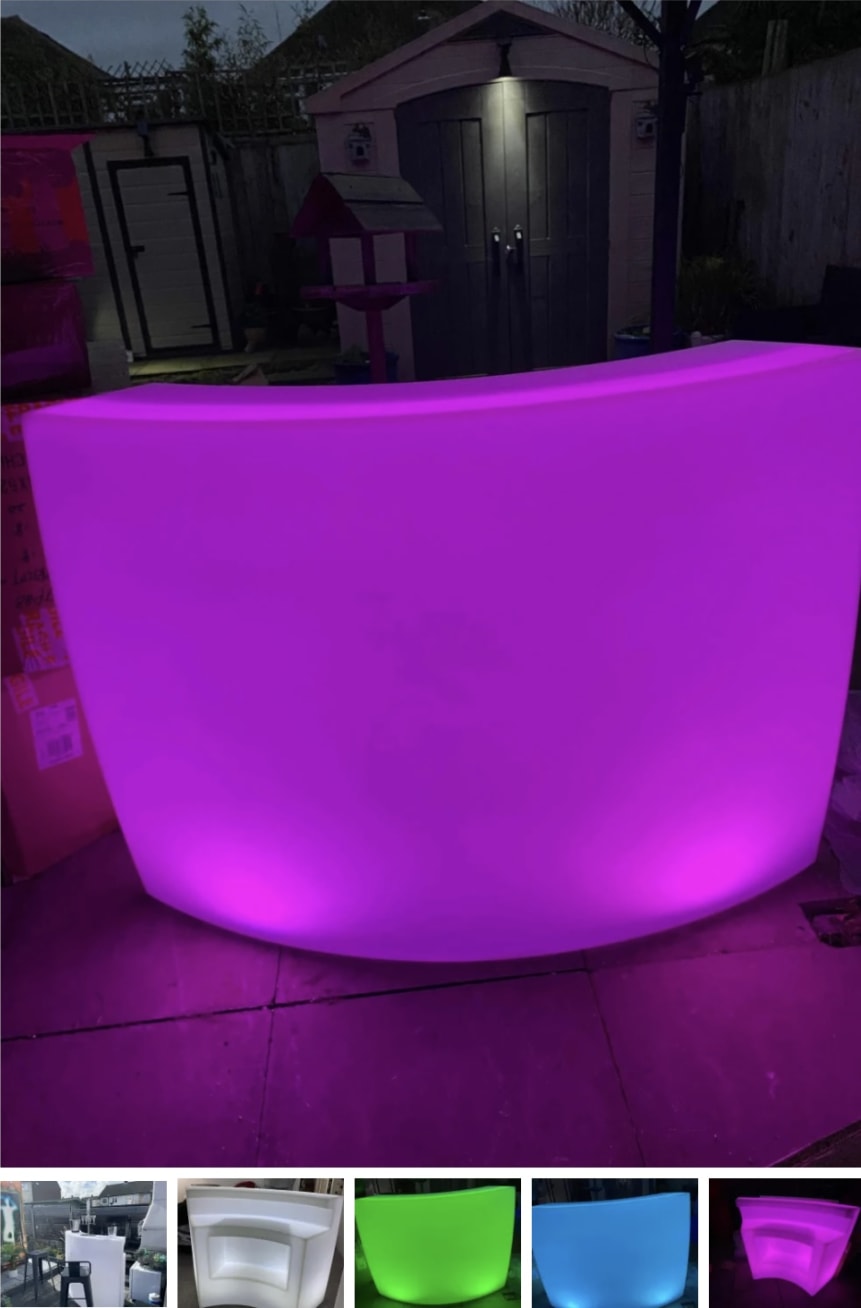 The bar is always the focus of a good party, so make sure yours really stands out with this stunning light-up LED bar for hire in Gravesend, Dartford, Chatham, Sevenoaks, Sidcup and Rainham. Forget the disco lights, this is a show all on its own, as dozens of multi-coloured lights set the party mood perfectly while they wait for their drinks.