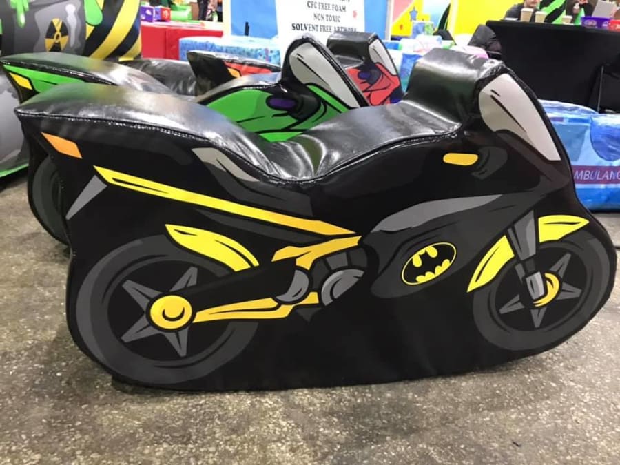 The 2 soft play bikes we offer is Batman and Spiderman, they look amazing when hired with any of our Super Hero Bouncy castles and Super Hero Soft Play .