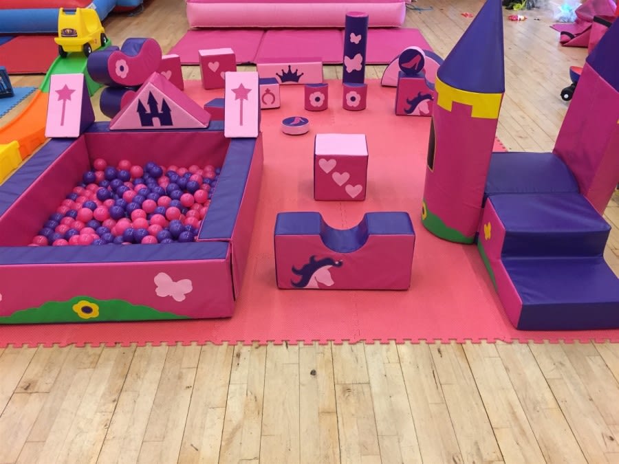 Brand New DELUXE pink soft play set which includes a 20 piece Princess themed set made up of different shapes and sizes, gorgeous soft play step n slide with castle turrets.