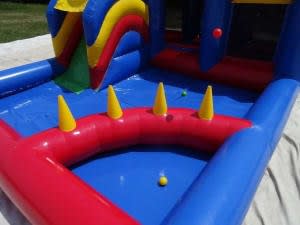 The popularity for these interactive play zones are ever increasing, there brightly coloured and designed for a younger audience usually under 5's. Its perfect for Parents to have some fun to and interactive with their children on their special day. Its a completely contained unit that boats a big up and over slide, a netted bounce area and a ball pit.