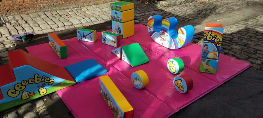 The CBeebies soft play set includes an array of brightly coloured shapes, slides, and mats, all designed with favourite CBeebies characters to capture kids’ imaginations. The accompanying ball pit, filled with vibrant balls, adds even more excitement to the setup. It’s ideal for keeping little ones entertained at birthdays, family gatherings, or even school and nursery events.