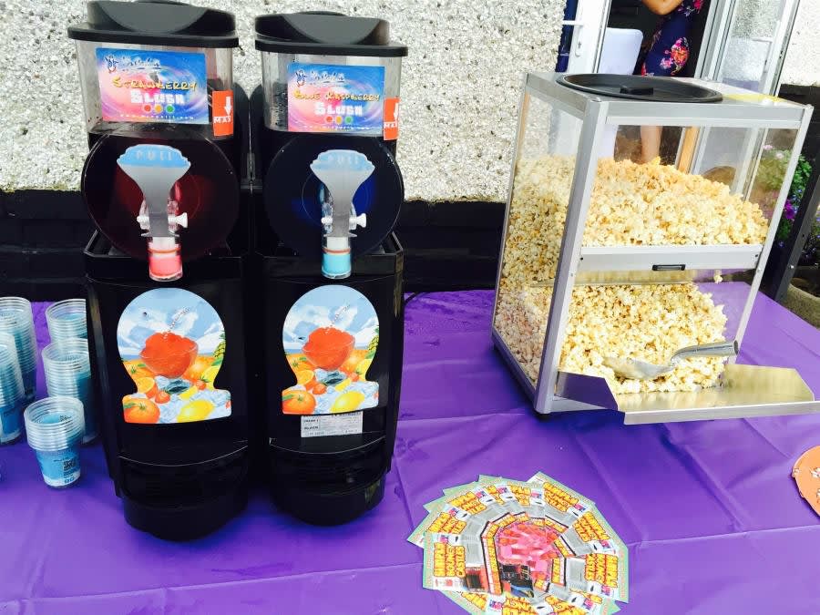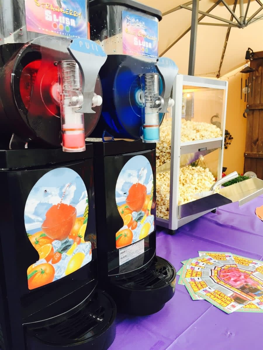 Our popcorn machine and slush machine package comes with everything you need to start serving, special cinema grade popcorn flavouring, slush machine syrup pre-made and loaded for you, cups, straws, popcorn bags, absolutely everything!