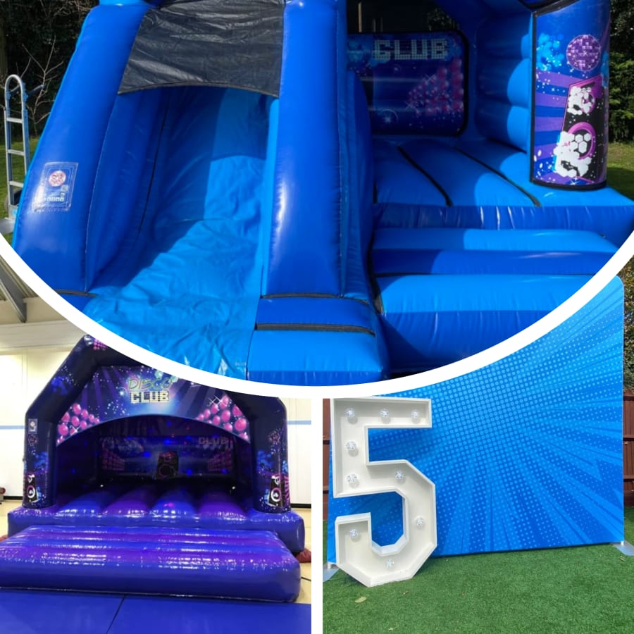 Also included is our 12 x 15 Disco castle that also has a speaker and light included, includes a slide at the front too. This package comes with a choice of backdrops and LED numbers that you will be able to select on the next page of the booking process. Additional numbers of products can also be added through the booking process. This is a really cool 'All in one' package that would transform any venue into being Party Ready.