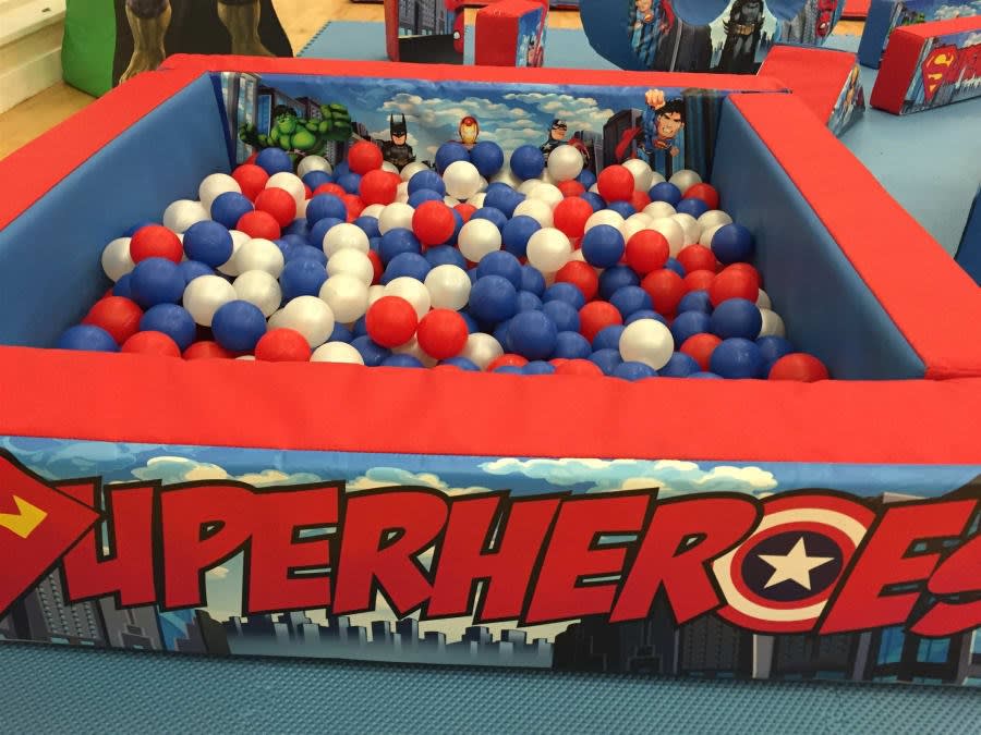 Amazing Soft play Ball Pool. 18 Awesome Super Hero shapes, Slide and Double Rocker!!