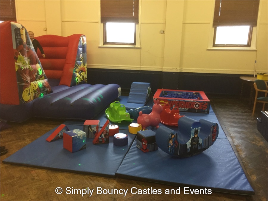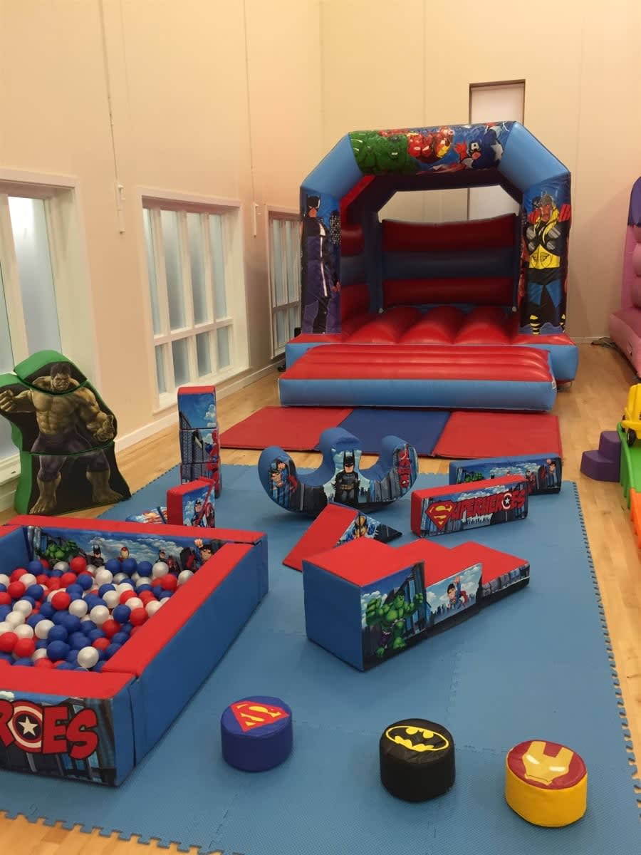 Package includes our NEW Super Hero Castle and Super Hero Soft Play with a choice Inflatables